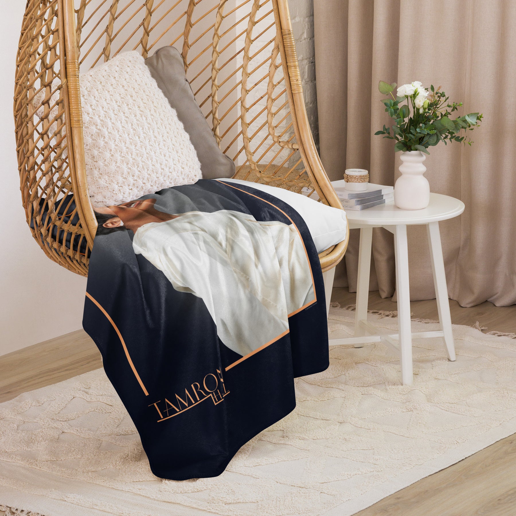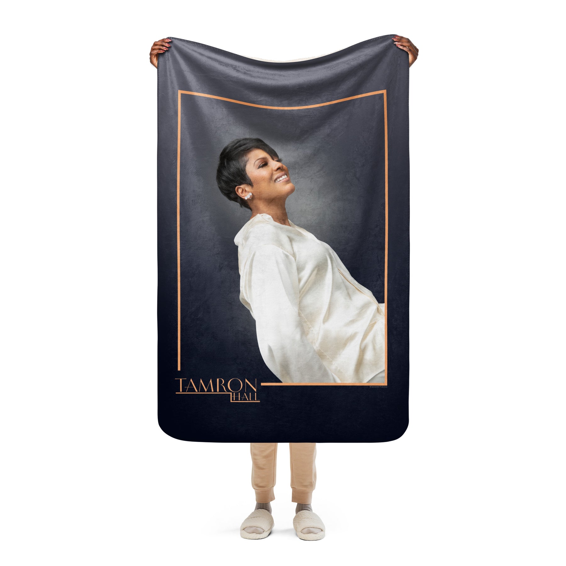 Regular price $49.95 Save Liquid error (snippets/product-template line 214): Computation results in '-Infinity'%Wrap yourself in luxury with this Tamron Hall Show sherpa blanket, featuring a stunning portrait of your favorite host. Gold frame accents and a classic black backdrop make this plush accessory a standout addition to any living room or bedroom. There is no better couch-side companion for curling up during deep-dive interviews and golden hour conversations. Enjoy the warmth and inspiration of the Tam Fam while relaxing in warming comfort.